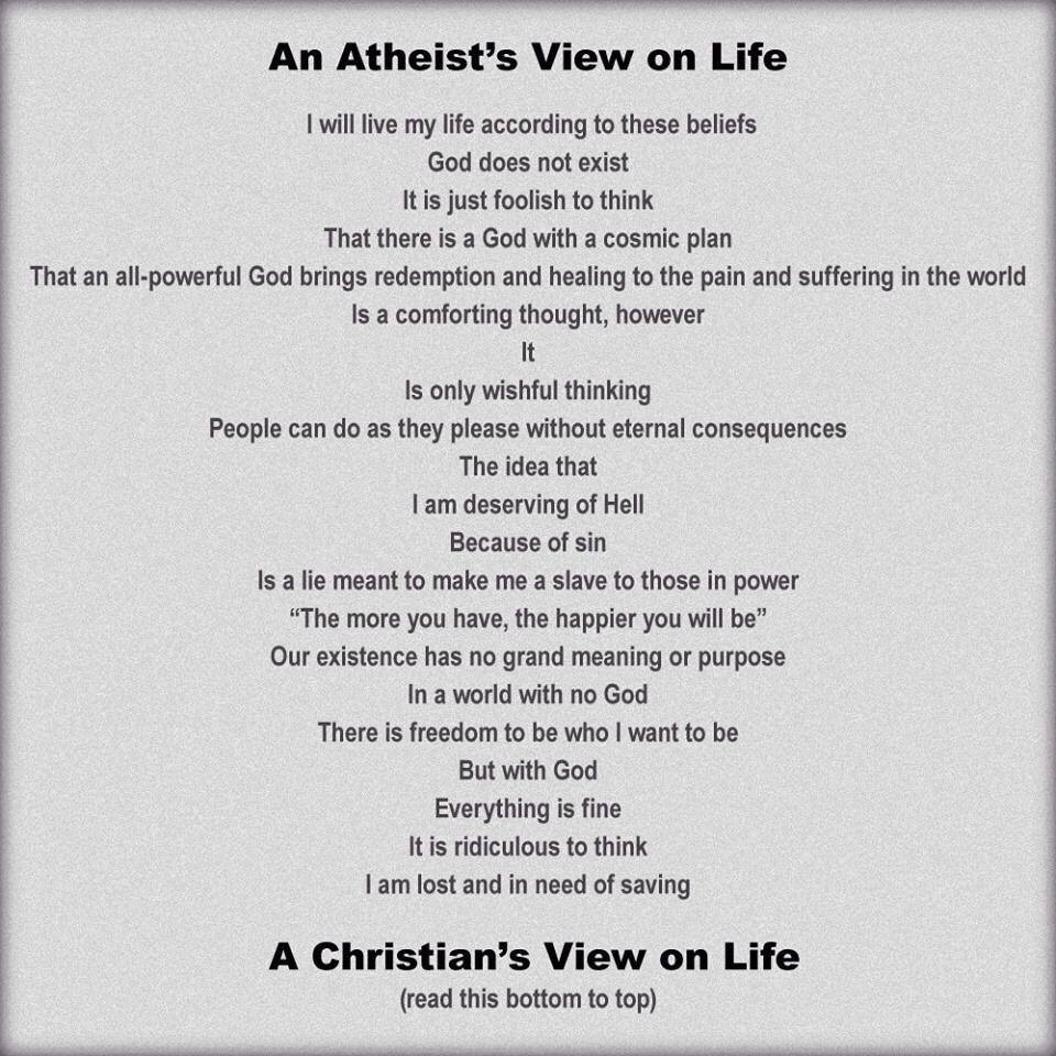 MAKE SURE TO READ THE POSTER ABOVE TOP TO BOTTOM (for Atheist’s beliefs), AND BOTTOM TO TOP (for Christian’s beliefs)